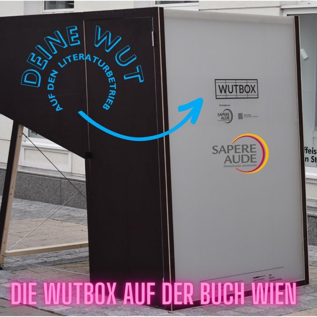 Und das beste: Wir zeigen Wien unsere analoge Wutbox, haben sie neu rausgeputzt und rufen auf der Buch Wien dazu auf, uns die Wut auf den Literaturbetrieb zu schenken. Wir nehmen aber auch jede andere!