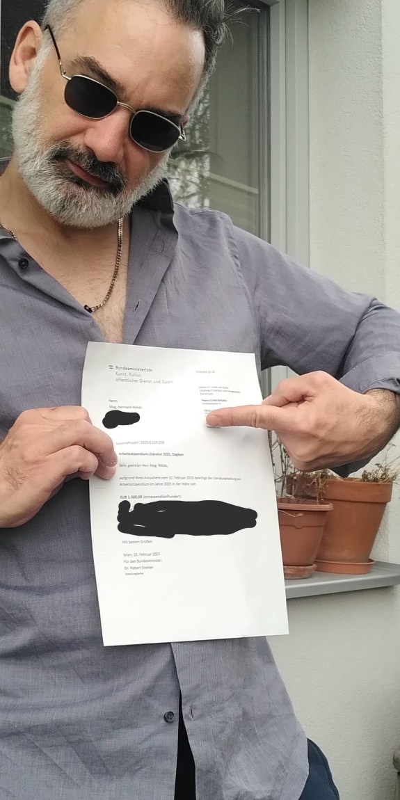 Mir wurde wieder ein Arbeitsstipendium überlassen für die Arbeit an